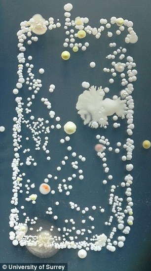 薩里大學(xué)學(xué)生發(fā)現(xiàn)的另一種細(xì)菌是蕈狀芽孢桿菌。它們通常生活在土壤中,這意味著手機(jī)或手機(jī)用戶最近和土壤有過接觸。蕈狀芽孢桿菌常用于普通殺蟲劑,旨在抑制有害細(xì)菌和真菌的生長(zhǎng)。這個(gè)實(shí)驗(yàn)是西蒙-帕克實(shí)用與生物醫(yī)學(xué)細(xì)菌學(xué)課程論文的一部分。帕克每年都會(huì)要求學(xué)生把他們手機(jī)的痕跡留下來。這組照片來自他最近的實(shí)驗(yàn)。